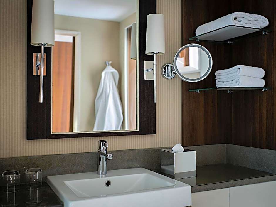 Готель пропонує низку першокласних послуг, серед яких безкоштовний Wi-Fi, освіжаюча сауна, добре обладнаний фітнес‑центр та приємний бар і ресторан з різноманітними варіантами харчування. У Pullman Cologne також доступні номери, куди дозволено проживання з тваринами за додаткову плату — ідеально для тих, хто подорожує з улюбленцями. Прокиньтеся і снідайте перед тим, як вирушити досліджувати жваве міське середмістя з його історичними пам’ятками та живою атмосферою, яке знаходиться за кілька кроків від готелю.